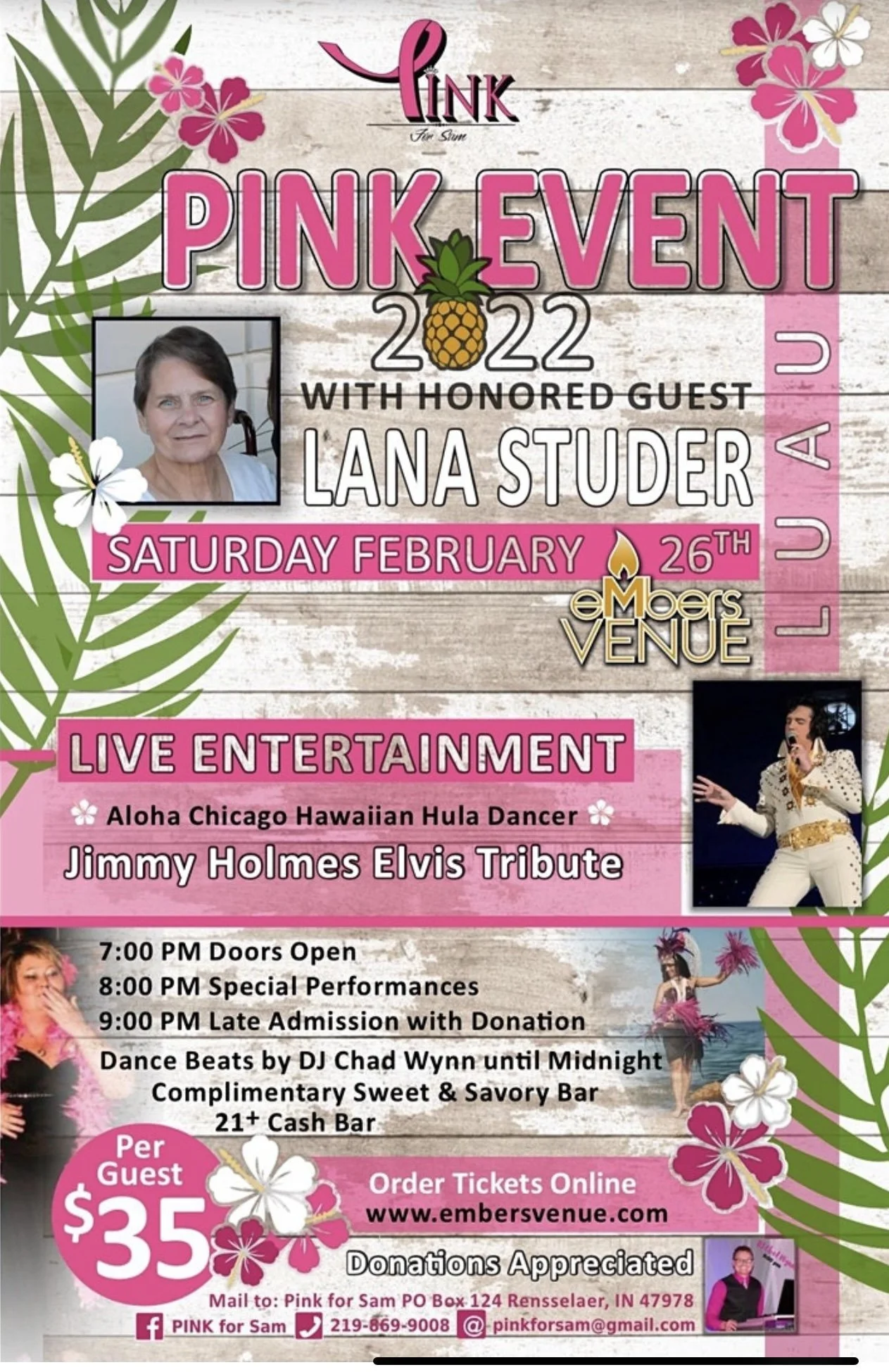 Please come join us on Saturday, February 26, 2022, at 7:00 pm central time at eMbers Venue as we CELEBRATE Lana Studer!!!